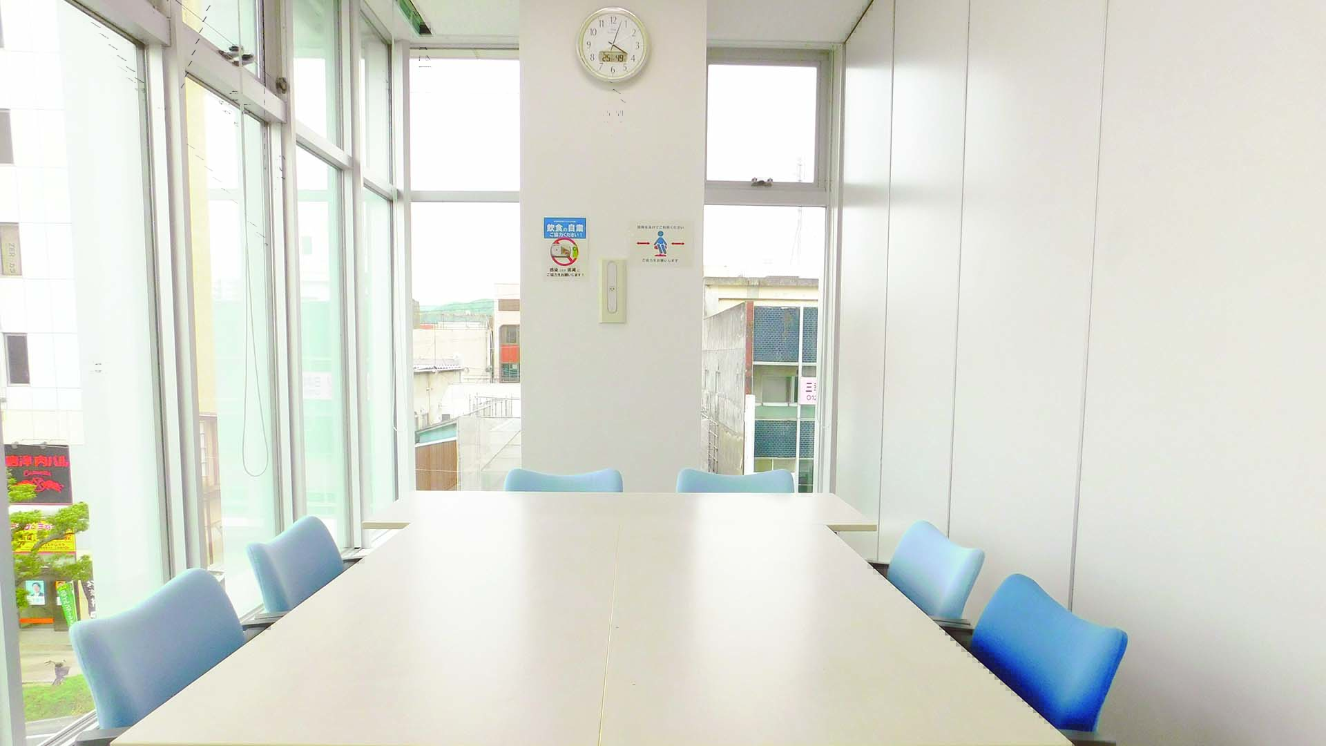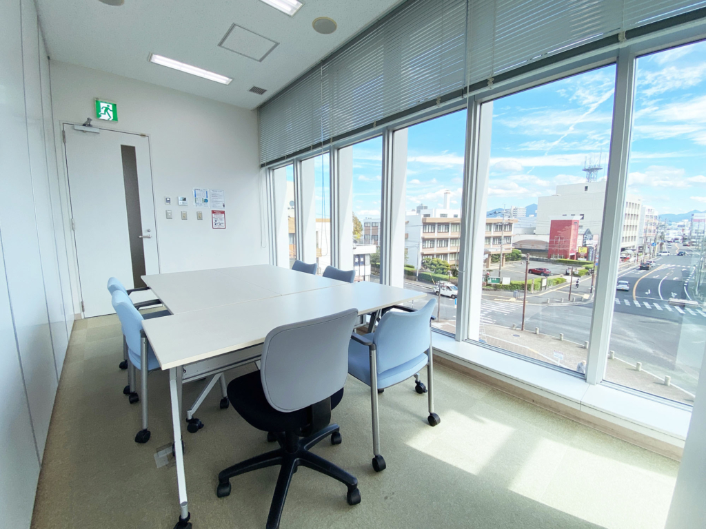 小会議室 2(定員6名) 当館4つ目の会議室です。定員6名の一番小さな会議室で、会議だけでなく、少人数向けの教室やサークル活動、個人での仕事、学生さんの勉強など、ジャンル問わず様々な目的でご利用いただいております。1~2名でも気兼ねなく利用できるスペースをお探しの方にオススメです。また、お部屋の単価が一番お安いお部屋となっておりますので、当館一番人気のお部屋でもございます!・広さ:17.28㎡(5.2坪)・机3台、椅子6脚・プロジェクター/置き型(有料器具:1,000円/1日) 多目的ホールRead More交流活動室(ミーティングスペース4か所・イス45脚)Read More第1,第2連結会議室Read More第1会議室(机10台、椅子20脚)Read More第2会議室(机12台、椅子24脚)Read More小会議室 2(定員6名)Read More小会議室 1(定員12名)Read More